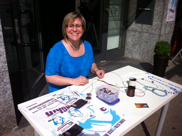 In der Nachhilfe IMMERSCHLAU sind seit einigen Wochen Bilder und Kunstwerke der Künstlerin Sabine Reimann zu sehen. Am 23. September 2013 präsentiert und verkauft sie zusätzlich ihren handgemachten Schmuck und individuelle Grußkarten im Begegnungscafe` Tabitas.